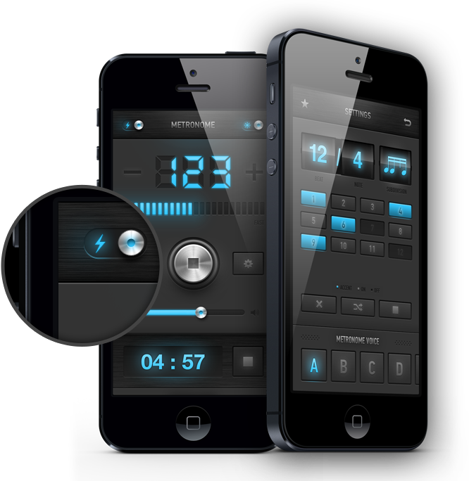 Visual: 2 color themes: dark and light. Classic metronome and Italian tempo marking option.